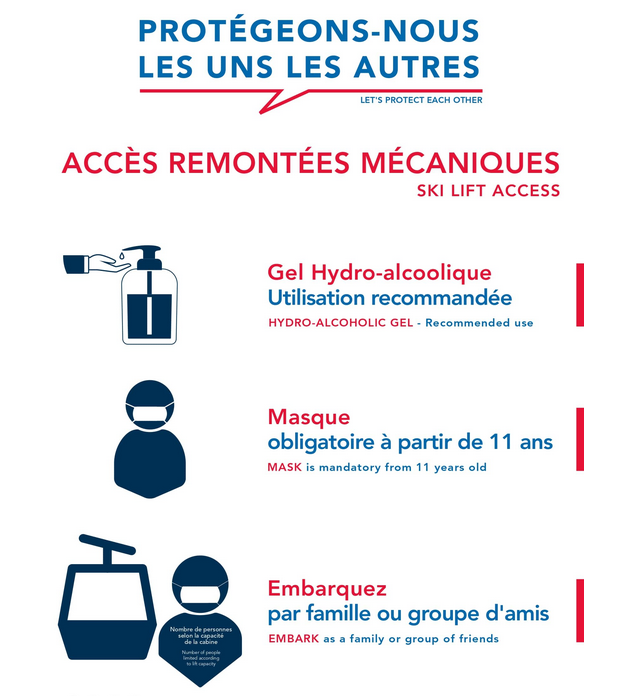 - Le port du masque dans les files d'attente et dans toutes les remontées mécaniques des 3 Vallées est obligatoire (à partir de 11 ans)