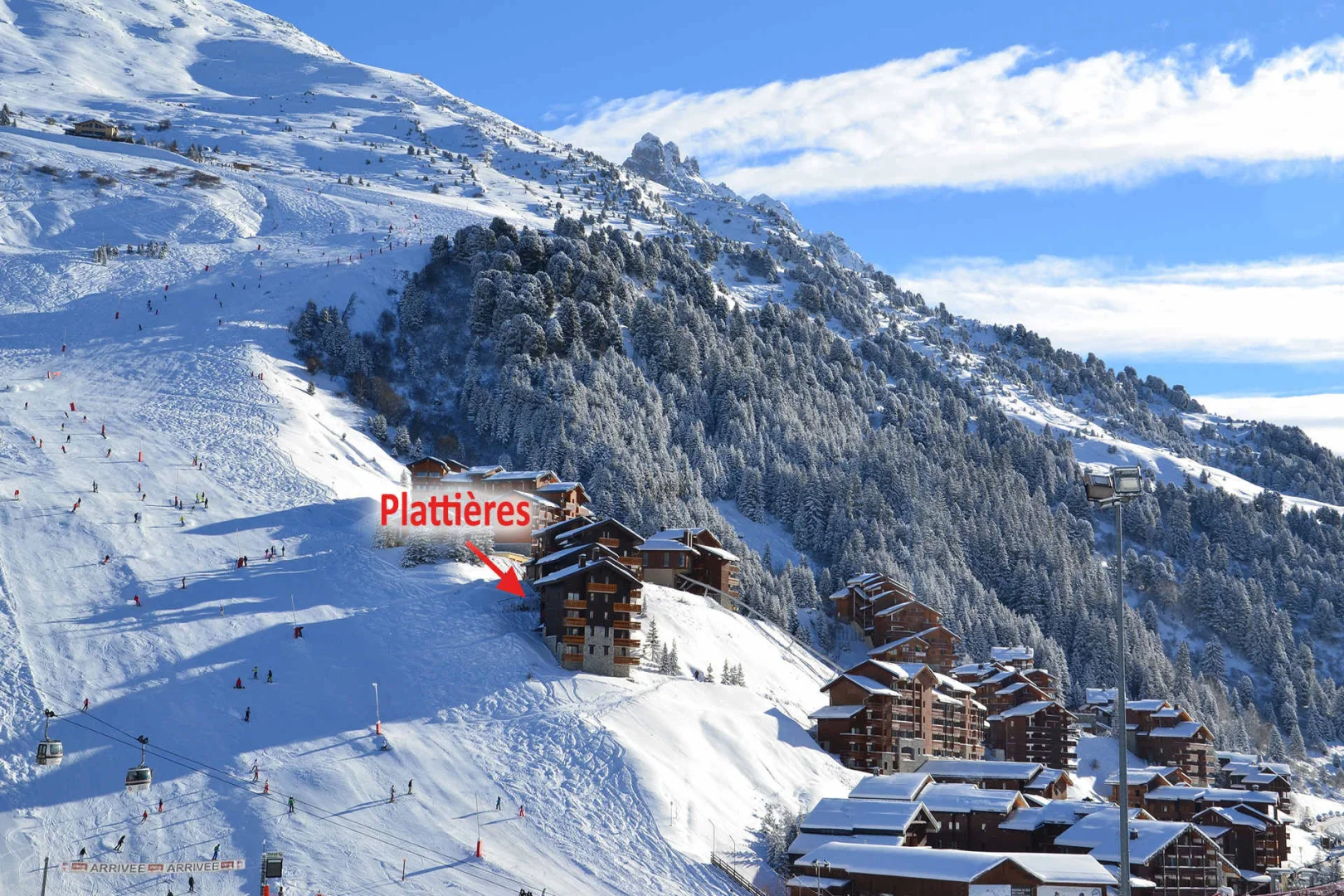 Residence " Plattieres " is along the red slope " Aigle ". Just put your skis on from the residence and ski down to the lifts.