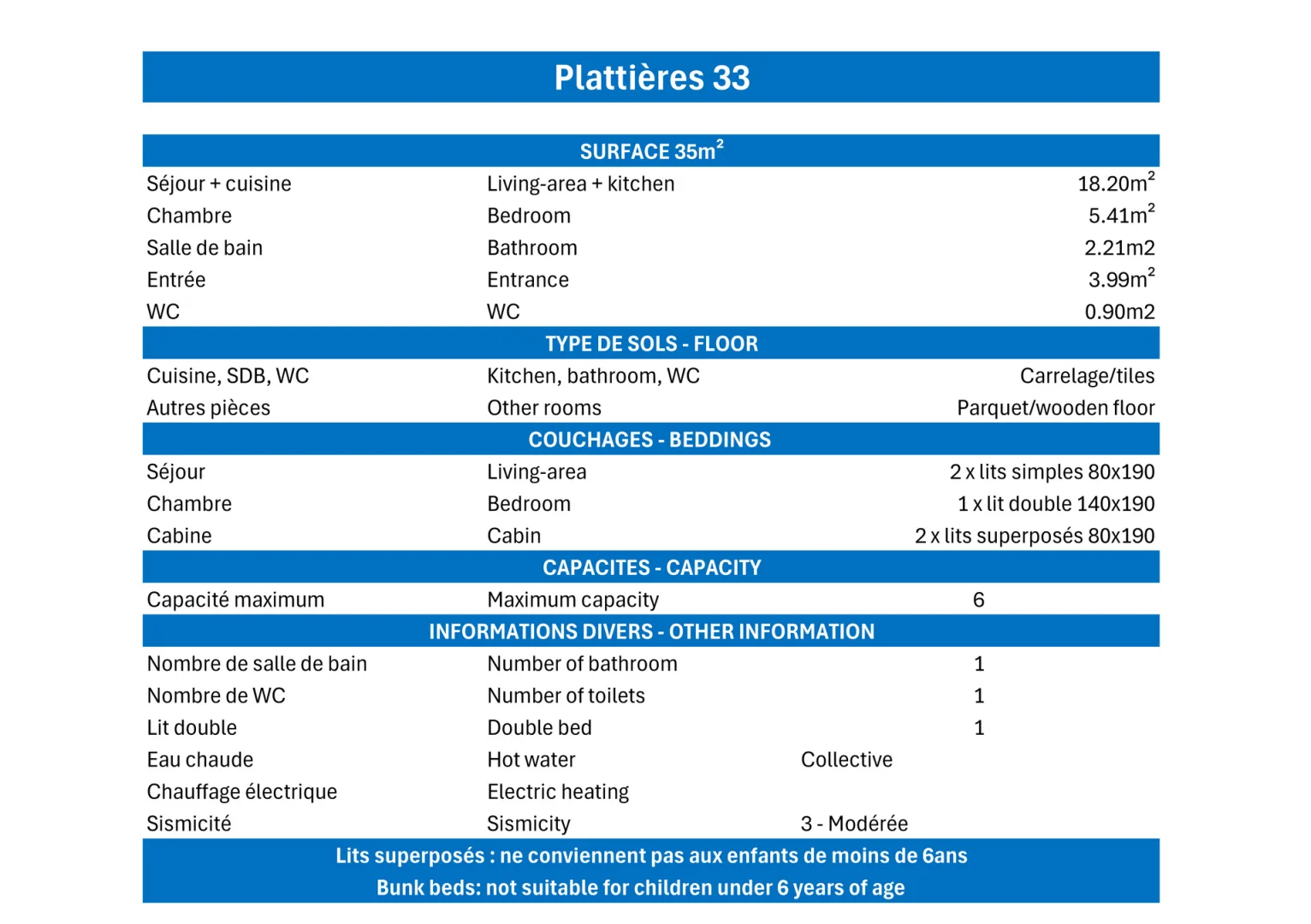 2 Rooms with cabin,5/6 Persons, 35m², South balcony, 2nd Floor