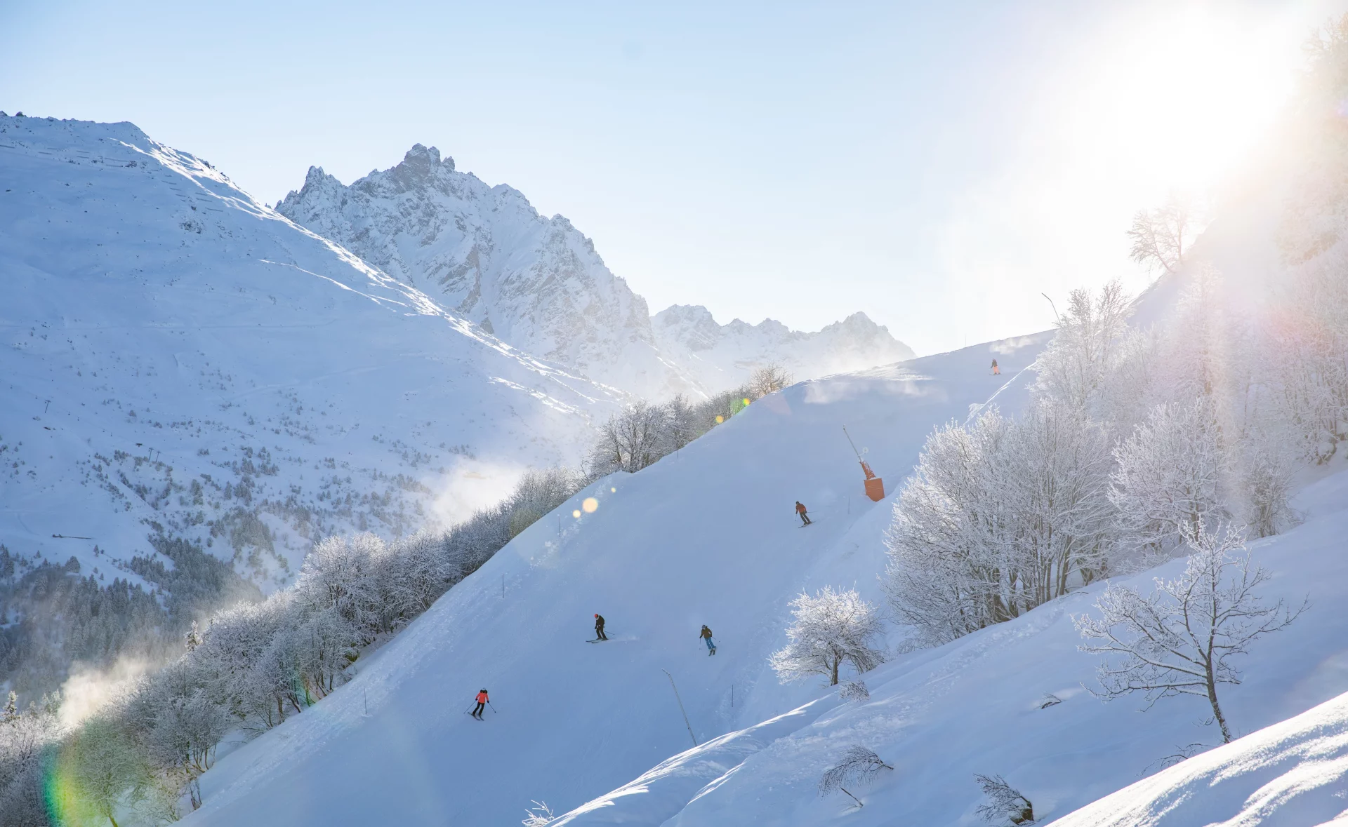 Les 3 vallées, of which Méribel is a part guarantees the largest number of open linked pistes in Europe of natural quality. The culture of snowmaking is respected by the 2,497 snow guns that cover more than 50% of the ski area. The inter-valley links are at an altitude of over 2,000 m, as are the slopes of the 3 Vallées at altitudes of 1,100 m and 3,230 m, guaranteeing snow cover throughout the winter. 85% of the ski area is above 1,800 m.