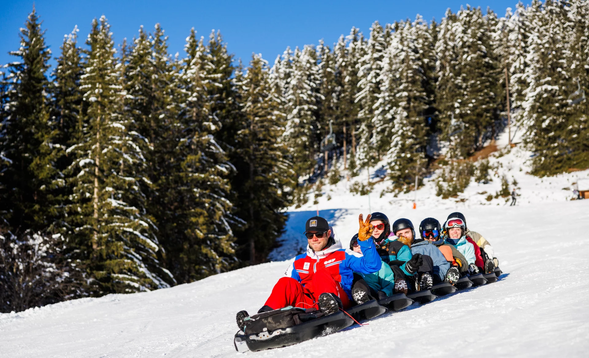 Mission Black Forest is 3km of snow track, 470m of drop and 28 bends. Accessible from 1.40m. Choose your sledge and helmet, and become one of the adventurers to save the tribe of the Forêt d'Arbin! Open every afternoon except Saturday from 2pm to 5.10pm.